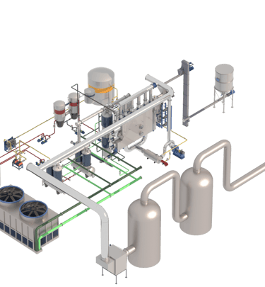 綠惜森林創新的生產線設計搭配獨家設計的裂解氣發電機。令綠色森林的裂解生產線比傳統的生產線更高效更環保