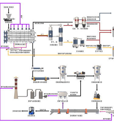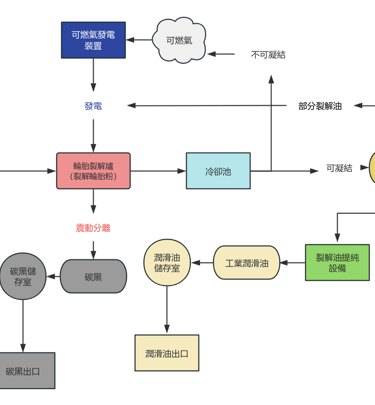 利用先進熱裂解技術將廢舊輪胎轉化成。 裂解油、碳黑、鋼絲等 實現廢物再利用♻️